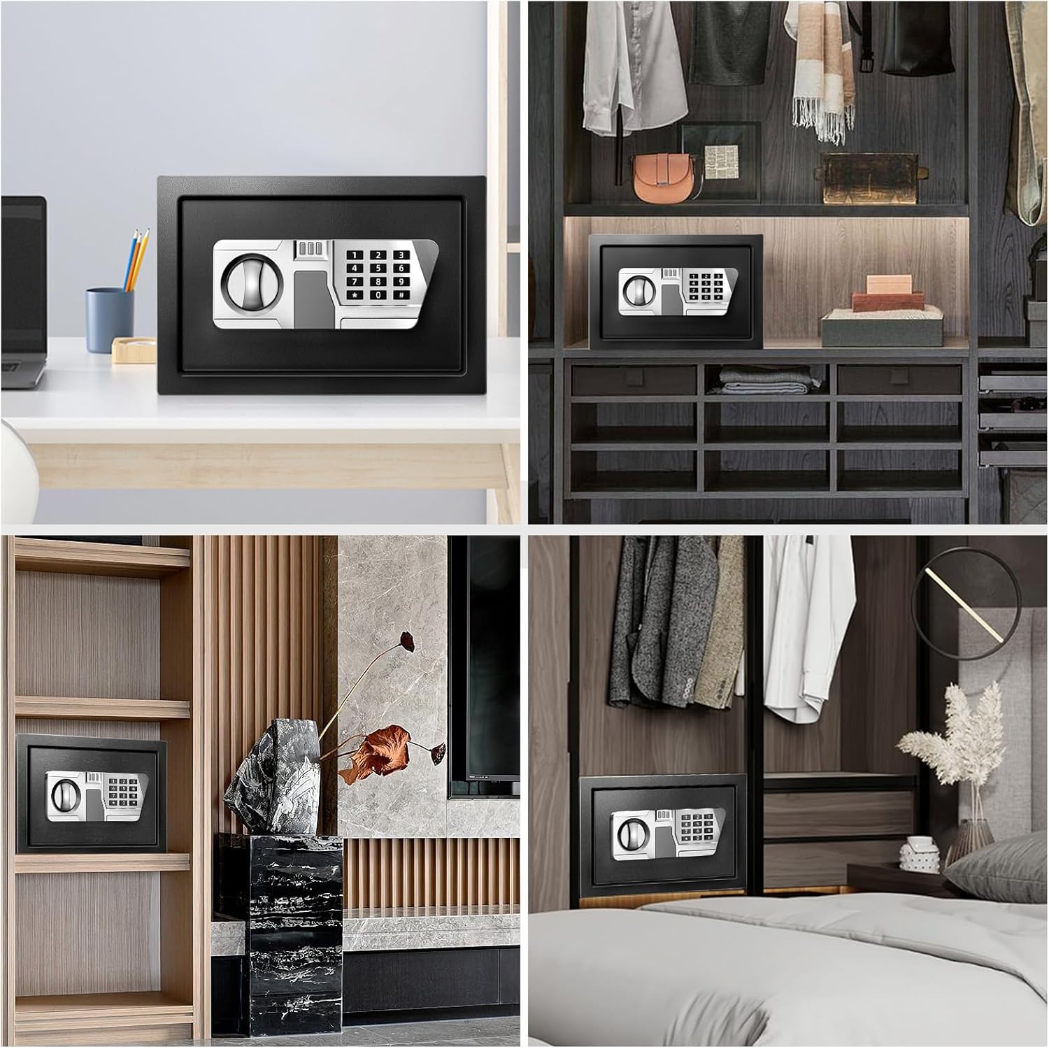 ??Durable Anti-theft Safe & Silent Mode??Constructed with SPCC steel, this safe is sturdy and reliable. Wrong password alarm will scare the thief away to some extent. You can also set up silent keypad mode to avoid disturbing your roomates at night.